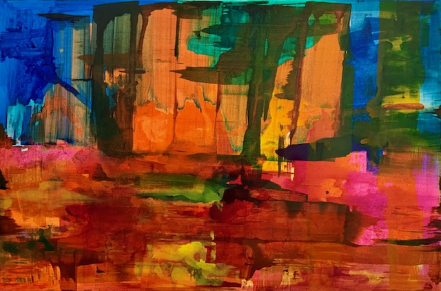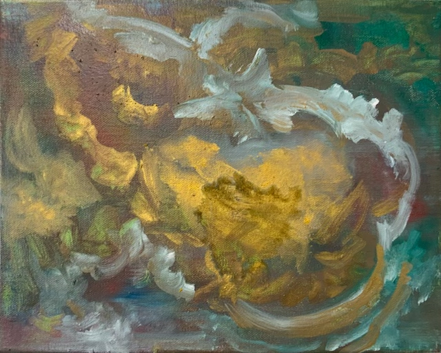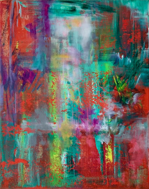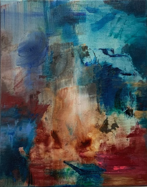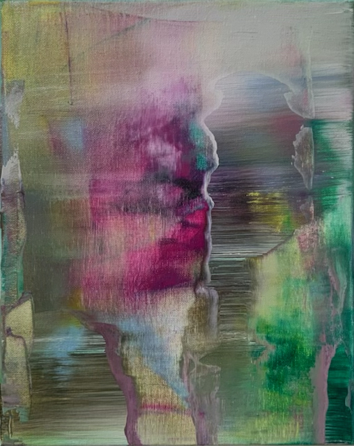 Ein zentrales Moment ihres Werks ist das bewusste Spiel zwischen Abstraktion und Figuration. Figurative Elemente treten zurück oder lösen sich vollständig auf, während Farbe, Licht und Komposition in den Vordergrund rücken. In ihren kleinformatigen Arbeiten - oft als „Miniaturen“ bezeichnet – verdichtet sich dieser Ansatz besonders: Nicht die Größe des Bildes, sondern die Intensität der malerischen Aussage steht im Fokus. Diese Arbeiten sind keine Vorstudien, sondern autonome Werke, die das Verhältnis von Nähe, Konzentration und Wahrnehmung radikal zuspitzen.